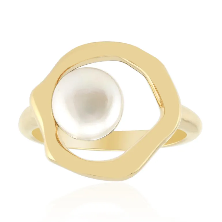 Dieser raffinierte Ring besteht aus einer glänzenden 7 mm großen, runden weißen Süßwasserperle aus China, die in vergoldetem 925er Sterlingsilber eingefasst ist. Der Ring wiegt ca. 2,85 Gramm und präsentiert mit seiner abstrakten Form von 24×19 mm einen modernen Twist. Er ist ideal, um jedem Outfit einen Hauch von Eleganz zu verleihen und eignet sich perfekt für besondere Anlässe oder als schickes Accessoire für jeden Tag.