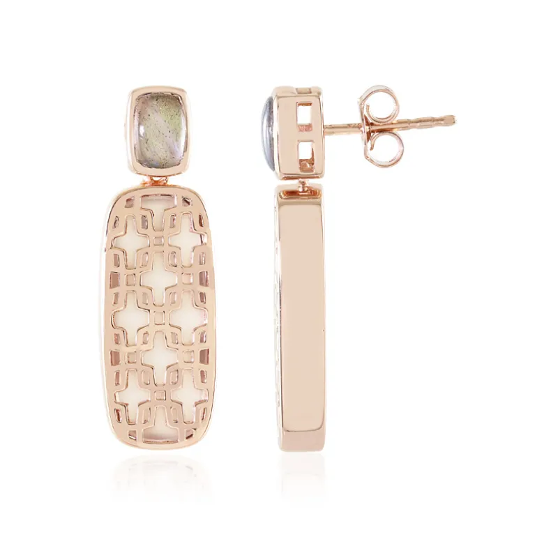 Indischer Chalcedon & Labradorit Rose Silber Ohrringe, 17,46ct