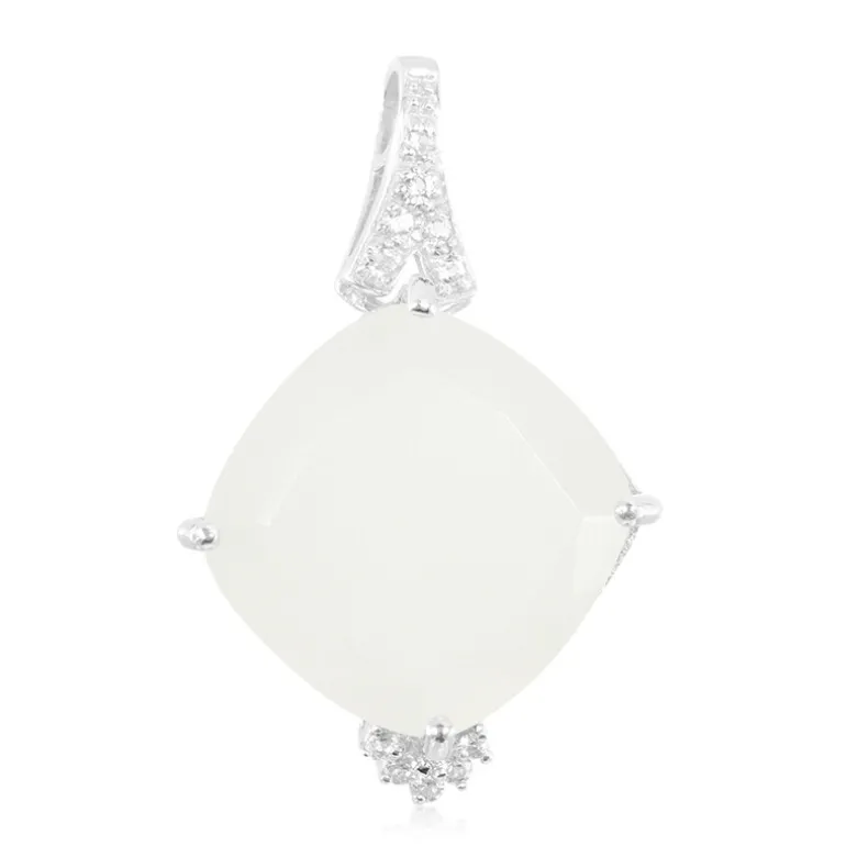 Dieser atemberaubende Anhänger zeigt einen bezaubernden weißen Mondstein aus Indien in einem antiken Kissenschliff. Akzentuiert durch 11 funkelnde brasilianische weiße Topase, strahlt das Stück Eleganz aus. Der aus 925er Sterlingsilber gefertigte Anhänger ist perfekt, um jedem Outfit einen Hauch von Raffinesse zu verleihen. Er ist ideal für die Abendgarderobe oder besondere Anlässe und lässt sich sowohl mit legerer als auch mit formeller Kleidung kombinieren.