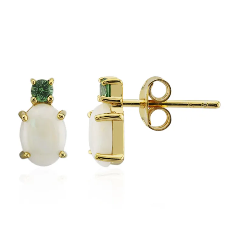 Australischer Weißer Opal & Tsavorit Vergoldete Ohrringe, 1ct