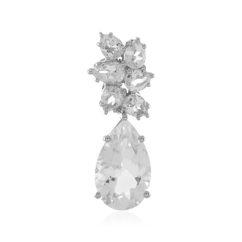 Dieser strahlende Anhänger präsentiert einen auffälligen brasilianischen weißen Quarz mit einem Gewicht von beeindruckenden 5,398 Karat, ergänzt durch strahlende weiße Topase aus Madagaskar mit insgesamt 2,297 Karat. Das aus platiniertem 925er Sterlingsilber gefertigte Schmuckstück ist luxuriös und vielseitig. Es lässt sich wunderbar mit Abendgarderobe kombinieren oder verleiht einem Freizeitoutfit einen Hauch von Glamour. Sein tropfenförmiges Design vermittelt einen Hauch von Raffinesse und macht ihn zu einer herausragenden Ergänzung für jede Schmucksammlung.