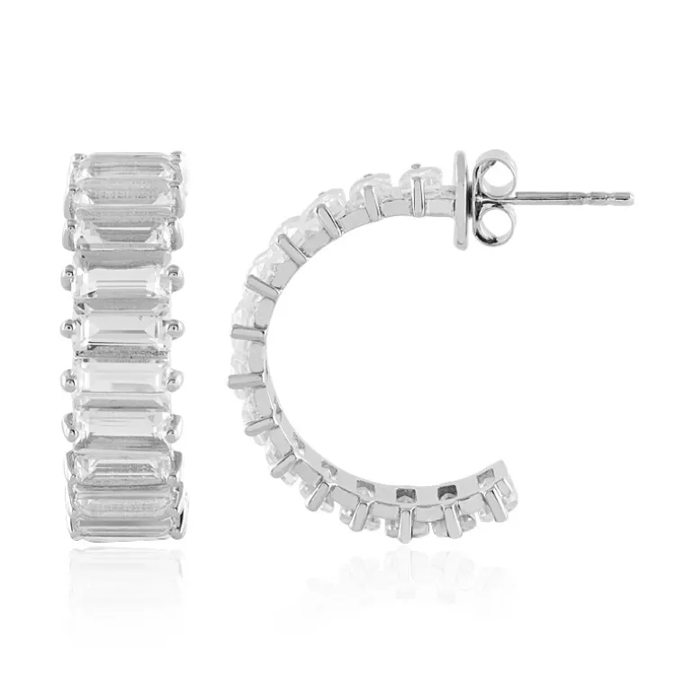 Brasilianischer Weißquarz Baguette Silber Ohrringe, 7,6ct