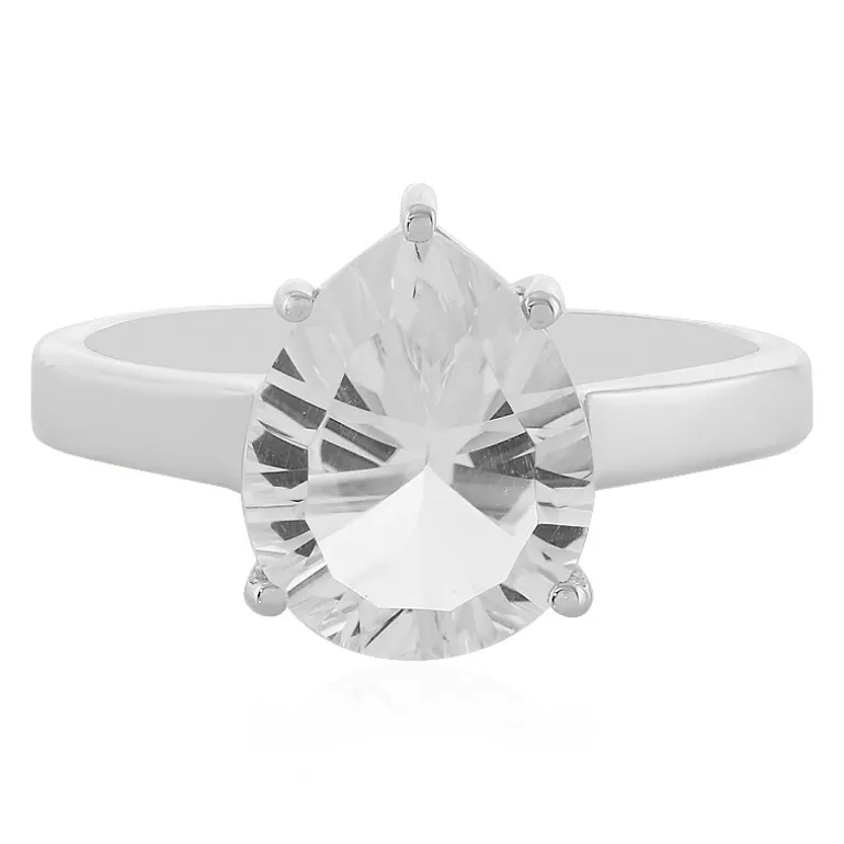 Entdecken Sie die Eleganz dieses strahlenden Rings aus brasilianischem Weißquarz mit einem tropfenförmigen Edelstein von 2,42 Karat, gefasst in poliertem 925er Sterlingsilber. Sein ausgefallener Facettenschliff verstärkt die Brillanz des Quarzes und macht ihn zu einer funkelnden Ergänzung für jedes Ensemble. Dieser Ring eignet sich sowohl für die Freizeit als auch für besondere Anlässe. Er verkörpert raffinierte Schlichtheit und wird Sie mit Sicherheit begeistern.