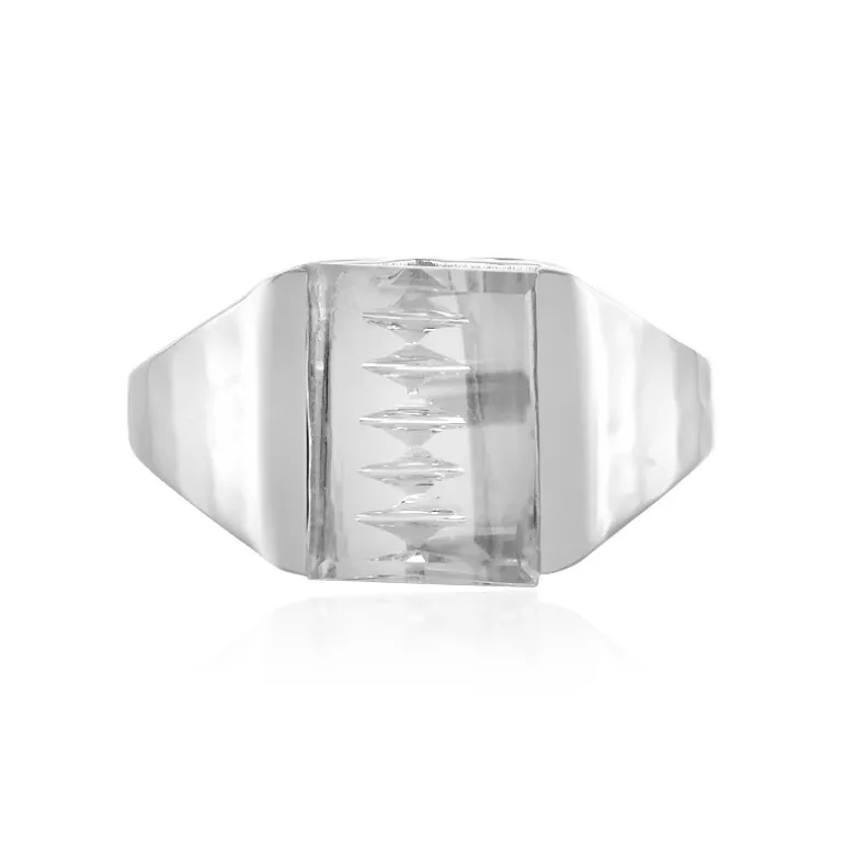 Entdecken Sie dieses moderne Meisterwerk mit einem auffälligen brasilianischen weißen Quarz von 4,32 Karat im einzigartigen Baguetteschliff, gefasst in glänzendem 925er Sterlingsilber. Mit seinen beeindruckenden Maßen von 12 x 9 mm ist der Edelstein dank seiner Klarheit und seines modernen Schliffs ein strahlender Blickfang an Ihrem Finger. Dieser Ring eignet sich perfekt, um sowohl tagsüber als auch abends einen Hauch von Eleganz zu verleihen und ist eine vielseitige Ergänzung für jede Schmucksammlung.