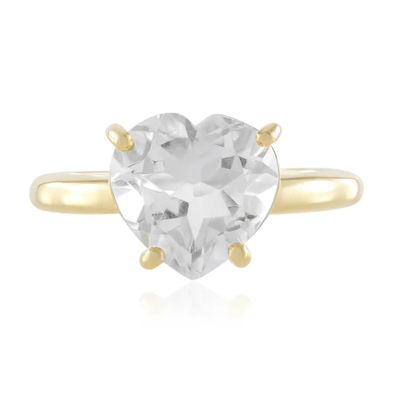 Entdecken Sie die Eleganz dieses atemberaubenden herzförmigen Rings aus weißem Quarz. Der brasilianische Quarz ist aus vergoldetem 925er Sterlingsilber gefertigt und glänzt mit 2,736 Karat. Dieses exquisite Schmuckstück eignet sich sowohl für den Alltag als auch für besondere Anlässe und passt hervorragend zu Abendgarderobe oder verleiht Freizeitoutfits einen Hauch von Eleganz.