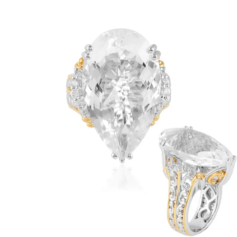 Dieser Ring aus weißem Madagaskar-Quarz, gefasst in 925er Sterlingsilber, verleiht einen Hauch von Eleganz. Der Hauptedelstein mit einem Gewicht von 18,918 ct im tropfenförmigen Schachbrettschliff wird von funkelnden Zirkonen aus Kambodscha mit insgesamt 0,299 ct flankiert. Dieses Schmuckstück zeugt nicht nur von raffiniertem Geschmack, sondern sorgt auch für reichlich Gesprächsstoff, perfekt für gehobene Veranstaltungen und anspruchsvolle Galas. Kombinieren Sie ihn mühelos mit Ihrer Abendgarderobe oder heben Sie ihn von einem einfarbigen Outfit ab, um ihm einen Hauch von Glamour zu verleihen.