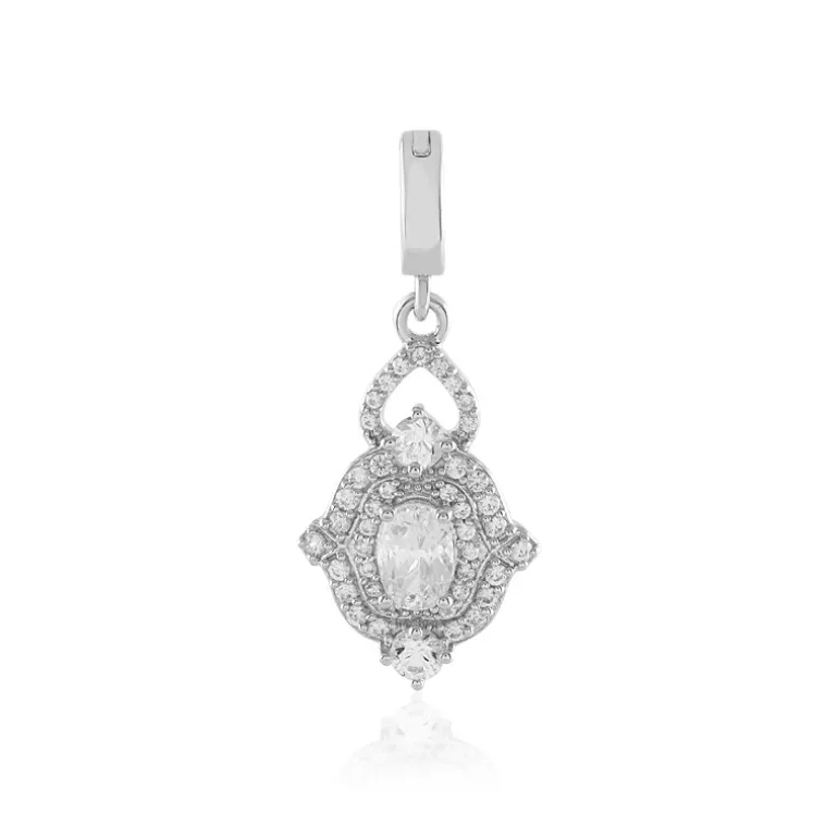 Genießen Sie die Anziehungskraft der Raffinesse mit unserem Anhänger aus weißem Madagaskar-Saphir. Dieser Anhänger aus 925er Sterlingsilber mit Platin-Finish besticht durch einen zentralen Saphir im Ovalschliff (0,445 Karat), der von funkelnden Saphiren im Rundschliff und 45 schillernden Zirkonsteinen flankiert wird, und ist mühelos zu tragen. Seine verschnörkelte Silhouette und der Varioclip bieten stilistische Vielseitigkeit. Dieses luxuriöse Schmuckstück ist perfekt für besondere Anlässe oder als eleganter Begleiter im Alltag.