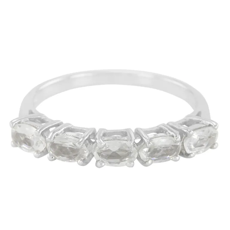 Dieser exquisite Silberring besteht aus einer Reihe von fünf schillernden weißen Saphiren im Ovalschliff, die alle unter ethischen Gesichtspunkten aus Madagaskar stammen und ein Gesamtkaratgewicht von 1 ct erreichen. Die Fassung aus 925er Sterling Silber unterstreicht die Leuchtkraft der Saphire und macht ihn zu einem vielseitigen Schmuckstück, das sich sowohl für den Alltag als auch für besondere Anlässe eignet. Dieser Ring verleiht jedem Ensemble einen Hauch von Raffinesse und eignet sich dank seines zeitlosen Designs perfekt als Geschenk oder als Ergänzung Ihrer Sammlung.