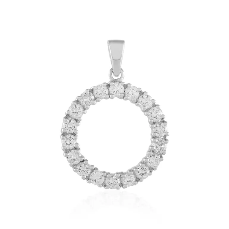 Entdecken Sie die Eleganz dieses exquisiten White Topaz Silver Circle Anhängers. Mit 18 brillant geschliffenen weißen Topasen aus Madagaskar bietet dieser Anhänger ein Gesamtkaratgewicht von 2,053 ct. Die Steine sind wunderschön in 925er Sterlingsilber mit einer polierten Platinbeschichtung gefasst. Er eignet sich sowohl für den Alltag als auch für besondere Anlässe und kann mit einer schlichten Bluse oder einem kleinen Schwarzen kombiniert werden, um einen Hauch von Glanz zu verbreiten.