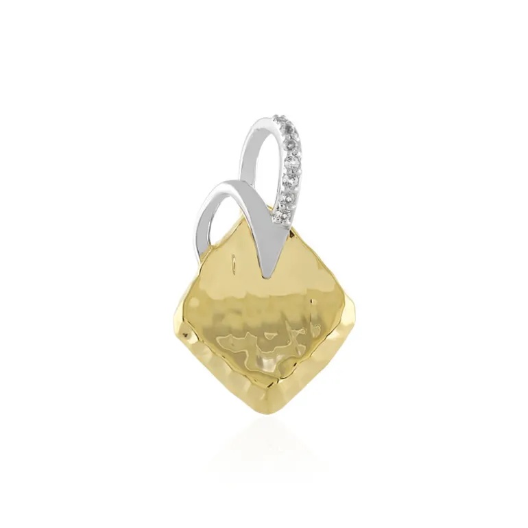 Entdecken Sie den zarten Charme dieses Anhängers aus vergoldetem Sterlingsilber, der mit sieben weißen Topasen aus Madagaskar im Rundschliff von insgesamt 0,079 ct geschmückt ist. Sein gehämmertes Goldfinish reflektiert das Licht wunderschön, während die schlanke Silberschleife mit Topas-Akzenten einen Hauch von Funkeln verleiht. Perfekt, um sowohl dem Alltag als auch besonderen Anlässen einen Hauch von Eleganz zu verleihen.