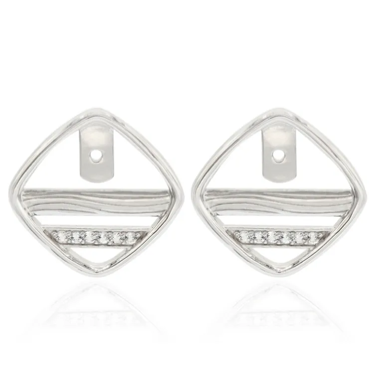 Wir stellen Ihnen unsere modernen, handgefertigten Ohrringe aus der MONOSONO COLLECTION vor. Sie sind perfekt für alle, die ein Faible für geometrisches Design und subtile Eleganz haben. Jeder Ohrring ist mit 6 brasilianischen weißen Topasen im Präzisionsschliff besetzt, die zusammen 0,165 Karat ergeben. Die aus hochwertigem 925er Sterlingsilber gefertigten Ohrringe wiegen ca. 4,59 Gramm und verbinden Langlebigkeit mit einem angenehmen Tragegefühl. Diese Ohrringe eignen sich sowohl für den eleganten Tag als auch für den glamourösen Abend und ergänzen mit ihrer funkelnden Anziehungskraft eine weiße Bluse oder ein elegantes Abendkleid.