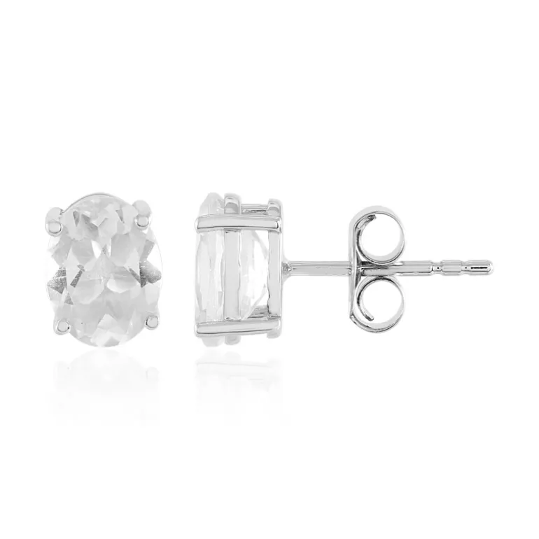 Entdecken Sie die zeitlose Eleganz dieser Ohrstecker aus 925er Sterlingsilber mit zwei exquisiten brasilianischen weißen Topasen im Ovalschliff von 2,61 Karat. Mit ihrem klassischen Design, das Raffinesse ausstrahlt, verleihen diese Ohrstecker sowohl der Tages- als auch der Abendgarderobe einen Hauch von Brillanz. Ihr leichtes Gewicht und ihre sichere Passform machen sie zu einem mühelos tragbaren Schmuckstück. Sie eignen sich perfekt zur Ergänzung eines Geschäftsanzugs oder zur Kombination mit einem Abendkleid für einen besonderen Abend.