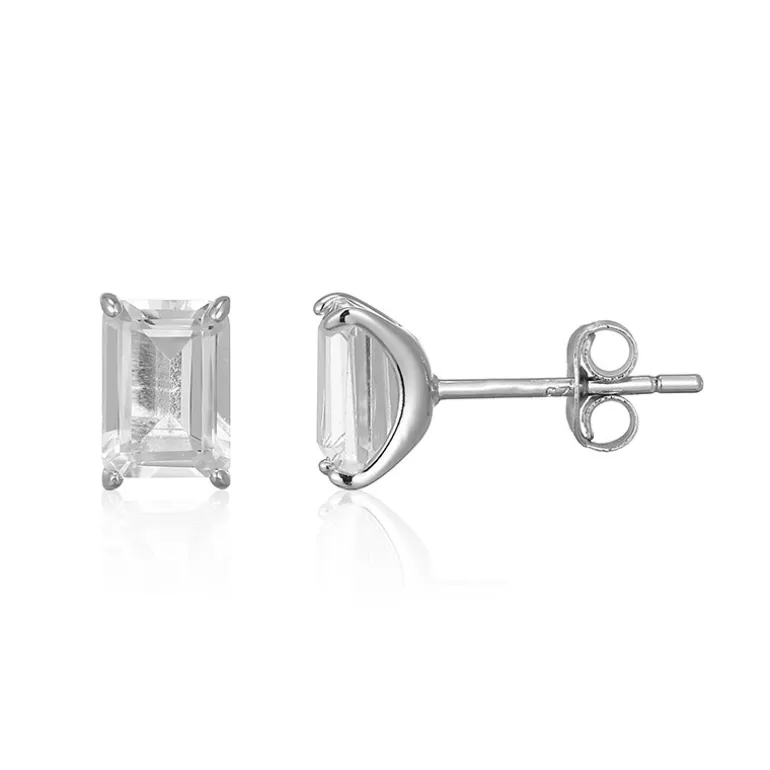 Entdecken Sie die zeitlose Eleganz dieser Ohrringe aus weißem Topas, die mit schillernden brasilianischen Edelsteinen im Achteck-Stufenschliff besetzt sind. Sie sind in 925er Sterlingsilber gefasst und wiegen nur 0,69 g, was ein perfektes Gleichgewicht zwischen Eleganz und Komfort darstellt. Diese Ohrringe eignen sich sowohl für den Alltag als auch für besondere Anlässe. Sie ergänzen mühelos jedes Outfit und verleihen Ihrem Stil einen Hauch von Glanz und Klasse.
