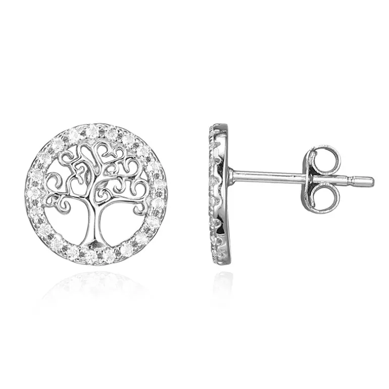 Entdecken Sie die Eleganz der Natur mit diesen schicken Ohrringen aus brasilianischem weißem Topas, die ein zartes Lebensbaum-Design zeigen, das von strahlenden Topas-Edelsteinen von 0,197 Karat umgeben ist. Die 11 mm großen Ohrstecker sind aus Sterlingsilber gefertigt und eignen sich sowohl für den Alltag als auch für besondere Anlässe. Kombinieren Sie sie mit einem Freizeitoutfit für einen Hauch von Glamour oder mit einem Abendkleid für einen raffinierten Look.