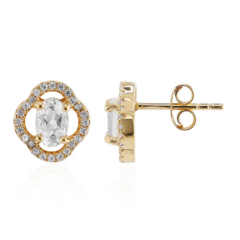 Entdecken Sie diese exquisiten Ohrringe mit zwei nigerianischen Weißtopasen, die elegant in vergoldetes Sterlingsilber gefasst sind. Funkelnde Zirkon-Akzente aus Tansania verleihen ihnen einen luxuriösen Touch. Mit einem Gesamtkaratgewicht von 1,249 eignen sich diese Ohrringe sowohl für den eleganten Alltag als auch für besondere Anlässe. Kombinieren Sie sie mit einem schicken Kleid zum Ausgehen oder verleihen Sie Ihrer Geschäftskleidung einen subtilen Glanz.