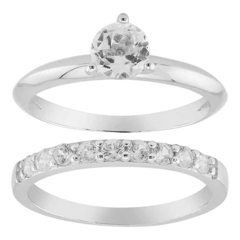 Weißer Topas & Zirkon Silber Ring Set