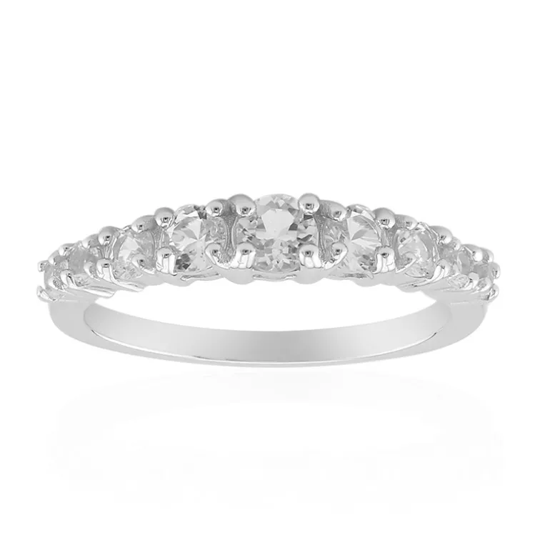 Entdecken Sie zeitlose Eleganz mit unserem Ring aus Sterlingsilber, der mit einem funkelnden Ensemble aus weißen Topasen aus Nigeria von insgesamt 0,657 Karat besetzt ist. Jeder einzelne, präzise geschliffene Topas, der in seiner Größe variiert, verstärkt die Ausstrahlung des Rings. Das 1,52 Gramm schwere Schmuckstück aus Sterlingsilber verleiht sowohl der Tages- als auch der Abendgarderobe einen Hauch von Raffinesse und ist damit eine exquisite Ergänzung für jede Schmucksammlung.