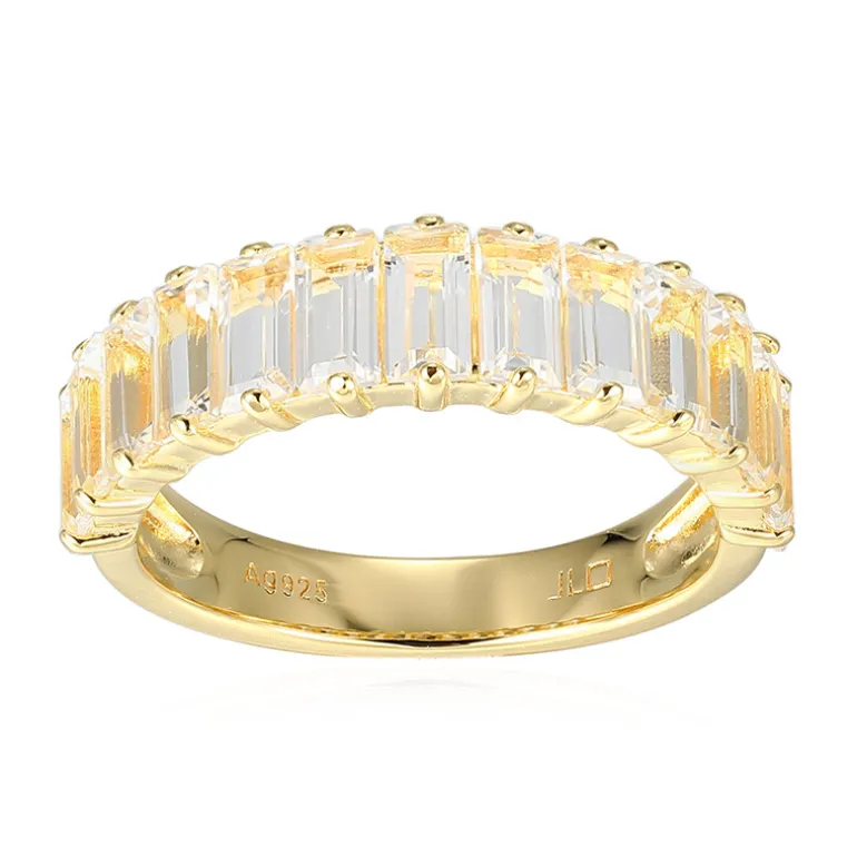 Entdecken Sie die moderne Eleganz dieses Rings aus vergoldetem 925er Sterlingsilber mit einer einzigartigen Anordnung von 13 brasilianischen weißen Topasen von insgesamt 2,63 Karat. Die Baguette-Edelsteine im Stufenschliff sind fachmännisch in einem 21×21 mm großen Band angeordnet und erzeugen einen strahlenden Schimmer, der die Blicke auf sich zieht. Dieser Ring eignet sich sowohl für Tages- als auch für Abendgarderobe und verspricht, Ihrer Kleidung einen raffinierten Glanz zu verleihen.