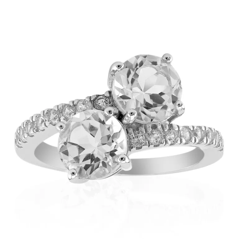 Tauchen Sie ein in die funkelnde Eleganz dieses Rings aus Sterlingsilber, gekrönt von zwei nigerianischen weißen Topasen von insgesamt 2,29 Karat, ergänzt durch 16 strahlende Zirkone aus Tansania. Mit einem Gesamtgewicht von 2,621 Karat, gefasst in hochwertigem 925er Sterlingsilber, ist dieses exquisite Schmuckstück der Inbegriff von Raffinesse. Der runde Schliff der Topase und Zirkone bringt ihre Brillanz voll zur Geltung und macht diesen Ring zu einer vielseitigen Wahl sowohl für den Alltag als auch für besondere Anlässe. Kombinieren Sie ihn mit Ihrem kleinen Schwarzen für einen Hauch von Glamour, oder lassen Sie ihn einem legeren Ensemble einen raffinierten Glanz verleihen.