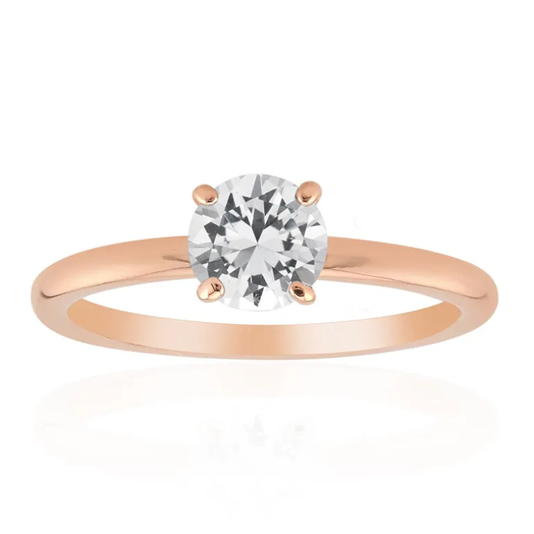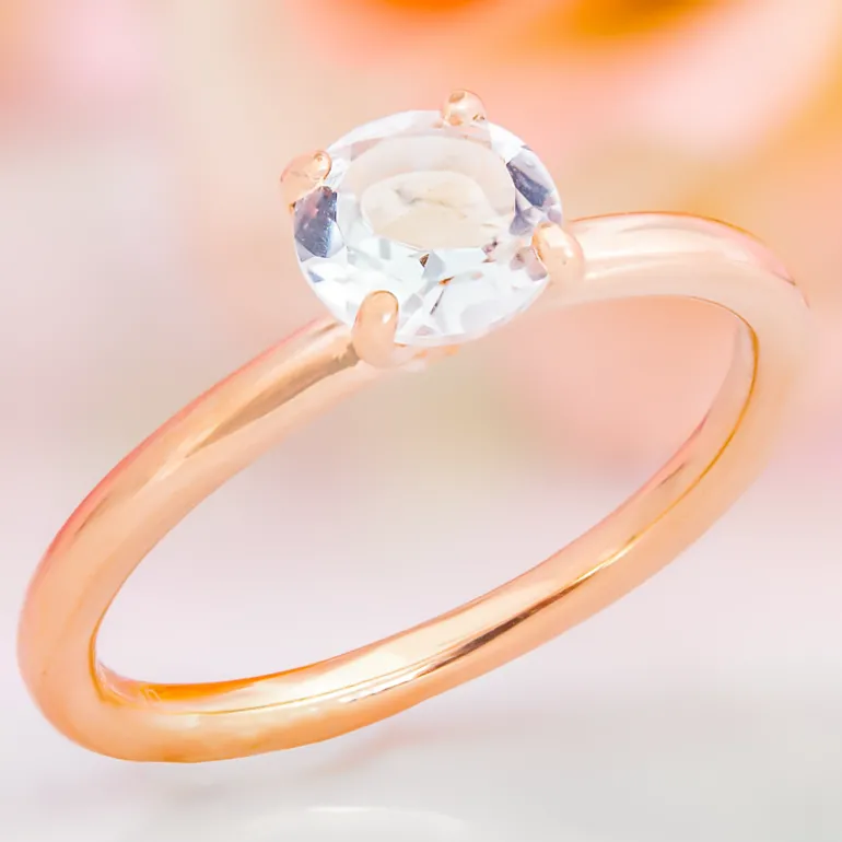 Entdecken Sie die pure Eleganz dieses schicken Rings aus 925er Sterlingsilber, der für einen Hauch von romantischer Wärme aufwändig rosévergoldet wurde. Sein Herzstück ist ein sorgfältig facettierter nigerianischer Weißtopas von 0,923 Karat, der für seine strahlende Klarheit und Brillanz bekannt ist. Der rund geschliffene, etwa 6 mm große Edelstein wird in einem eleganten und modernen Design präsentiert, das diesen Ring zu einer vielseitigen Ergänzung jeder Schmucksammlung macht. Er ist ideal für das tägliche Tragen oder für besondere Anlässe und passt zu allem, von der Freizeitgarderobe bis zum Abendkleid, ein wahrer Beweis für zeitlosen Stil.