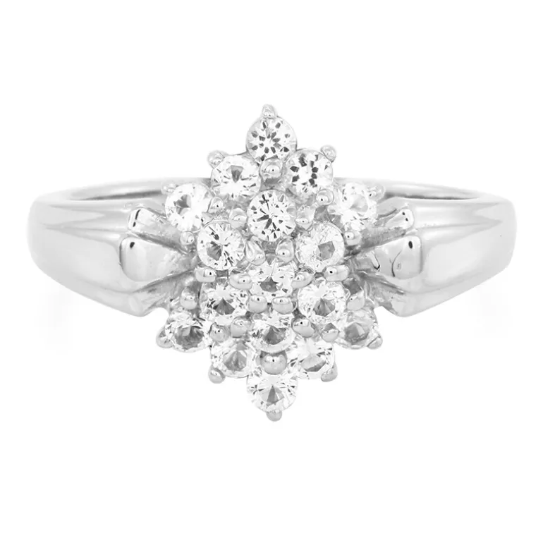 Dieser leuchtende Ring aus Sterlingsilber ist mit 17 funkelnden brasilianischen Weißtopasen besetzt und verkörpert die Essenz der Eleganz. Jeder der 2 mm großen Edelsteine ist auf einen runden, brillanten Glanz geschliffen und hat ein Gesamtkaratgewicht von 0,707ct. Der Ring wiegt ca. 2,87 g und präsentiert ein modernes Starburst-Design, das ein Statement setzt. Er eignet sich perfekt zur Aufwertung der Alltagskleidung oder zur Ergänzung der Abendgarderobe und verspricht eine vielseitige Ergänzung jeder Schmucksammlung zu sein.