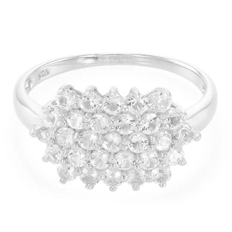 Brasilianischer Weißer Topas 925 Silber Cluster Ring