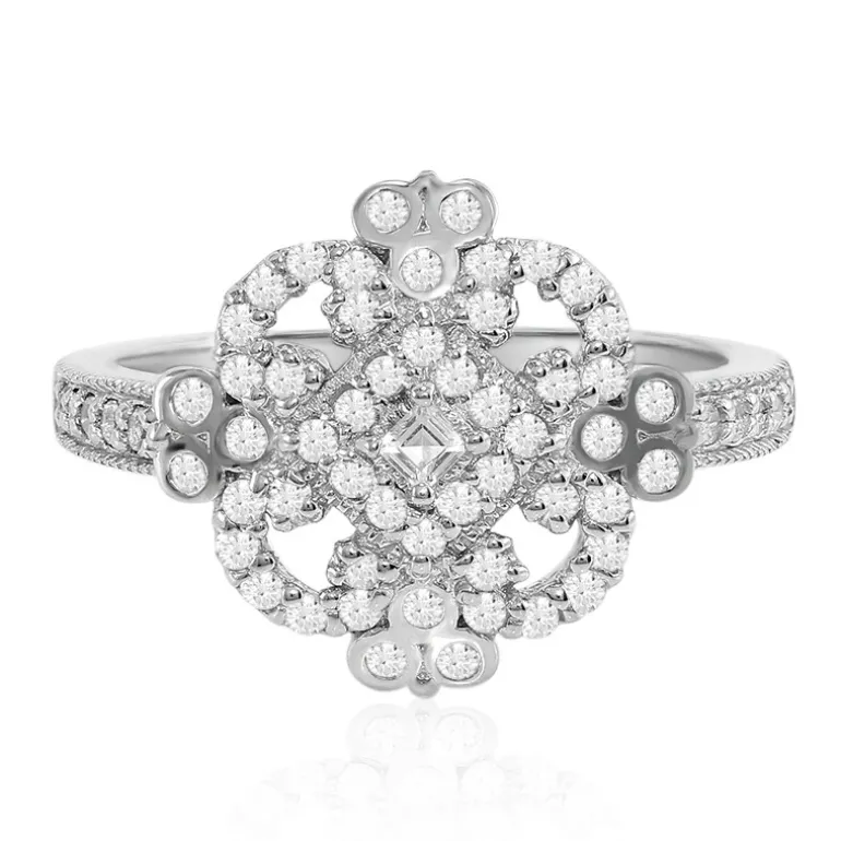 Entdecken Sie die Faszination dieses funkelnden Rings aus Sterlingsilber, der mit einem Medley aus strahlenden weißen Topasen aus Nigeria von insgesamt 0,665 Karat besetzt ist. Der zentrale Edelstein im Quadratschliff wird von einer Symphonie von Steinen im Rundschliff umrahmt, die sorgfältig arrangiert wurden, um ein Design zu präsentieren, das zeitlose Eleganz ausstrahlt. Das aus ca. 4,16 Gramm hochwertigem 925er Sterling Silber gefertigte Schmuckstück fängt das Licht wunderschön ein und ist damit eine exquisite Wahl für formelle Anlässe und den Alltag. Es ist ein vielseitiges Accessoire, das sich sowohl mit einfarbigen als auch mit farbenfrohen Ensembles kombinieren lässt.