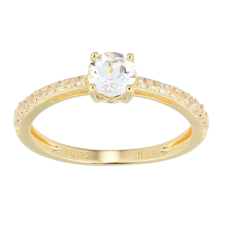 Zelebrieren Sie Eleganz mit diesem exquisiten Ring aus vergoldetem 925er Sterlingsilber, der mit einer Reihe von brasilianischen weißen Topas-Edelsteinen von insgesamt 0,629 Karat besticht. Der zentrale Topas im Brillantschliff mit einer Größe von ca. 5 mm ist der Star dieses anmutigen Rings. Er wird von einer Reihe kleinerer Topase im Rundschliff flankiert, deren gemeinsames Funkeln das Strahlen des größeren Edelsteins widerspiegelt. Dieser Ring ist ideal, um sowohl im Alltag als auch bei besonderen Anlässen einen Hauch von Raffinesse zu vermitteln, und verspricht, eine vielseitige Ergänzung für jede Schmucksammlung zu sein.