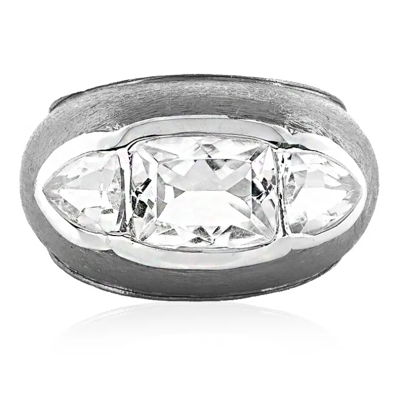 Entdecken Sie die Anziehungskraft dieses bezaubernden Rings mit einem exquisiten weißen Topas im Antikschliff, der von zwei funkelnden Edelsteinen im Billionenschliff flankiert wird. Der Ring ist aus glänzendem 925er Sterlingsilber gefertigt und wiegt ca. 6,51 Gramm, was ihm ein substanzielles und dennoch elegantes Aussehen verleiht. Sein Design bietet eine moderne Variante klassischer Raffinesse und macht ihn zu einer vielseitigen Ergänzung Ihrer Sammlung. Dieser Ring eignet sich sowohl für das Büro als auch für die Abendgarderobe und ist ein zeitloser Gesprächsanlass bei jeder gesellschaftlichen Zusammenkunft.