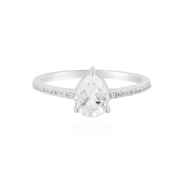 Entdecken Sie die zeitlose Schönheit unseres schicken Madagaskar White Topaz Drop Silberrings. Fachmännisch aus glänzendem 925er Sterlingsilber gefertigt und für zusätzlichen Glanz plattiert, besticht dieses Schmuckstück mit einem tropfenförmigen weißen Topas von 1,247 Karat, der aus Madagaskar stammt. Er wird von einer Reihe funkelnder kambodschanischer Zirkone von insgesamt 0,187 Karat eingerahmt, die ihm eine schillernde Aura der Eleganz verleihen. Dieser Ring eignet sich perfekt, um jedem Ensemble einen Hauch von Raffinesse zu verleihen. Er passt zu Abendveranstaltungen oder wertet Ihre Tagesgarderobe durch seinen subtilen Glamour auf.