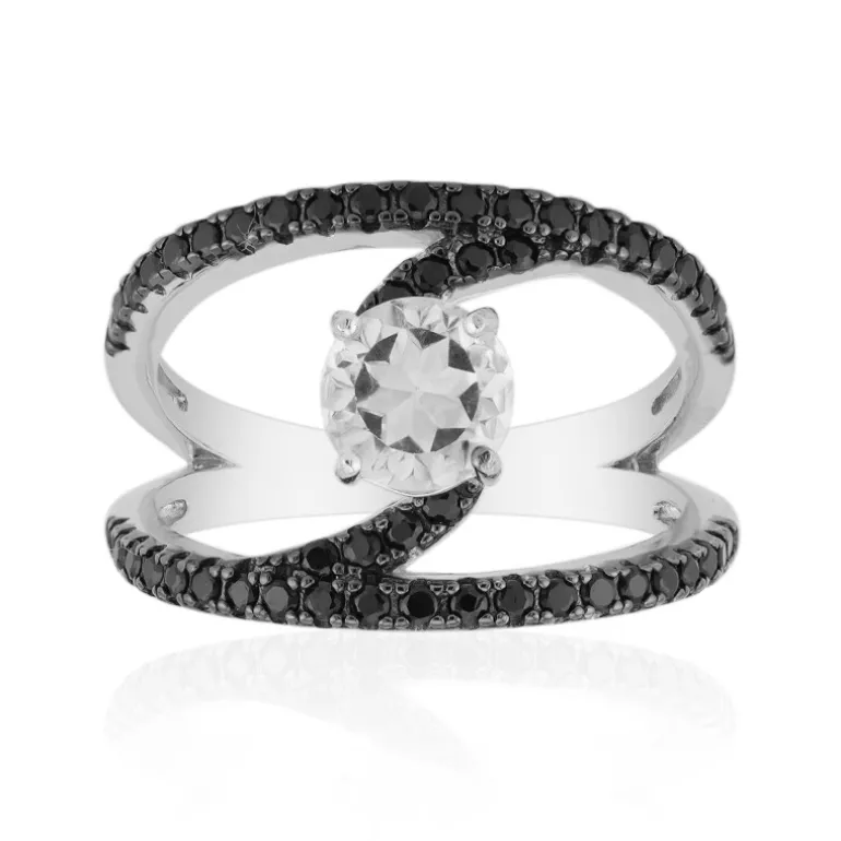 Entdecken Sie die Raffinesse dieses atemberaubenden Rings mit weißem Topas, der elegant aus 925er Sterling Silber gefertigt ist. Der funkelnde 0,882-karätige Topas aus Nigeria wird durch 50 schwarze Spinelle aus Thailand ergänzt. Perfekt für die Abendgarderobe oder als eleganter Begleiter für das Alltagsoutfit – dieser Ring ist ein Muss für alle Schmuckliebhaber.
