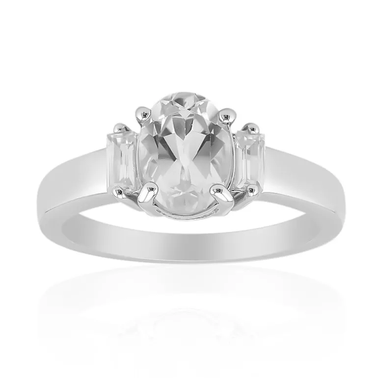 Dieser aus glänzendem 925er Sterling Silber gefertigte Ring besticht durch einen nigerianischen Weißtopas im Ovalschliff (1,368 ct) als Herzstück, flankiert von zwei Zirkonen im Baguetteschliff (0,27 ct) aus Tansania, die den Ring noch reizvoller machen. Das Gesamtkaratgewicht beläuft sich auf großzügige 1,638 Karat. Sein modernes Design passt mühelos sowohl zu schickem Tagesoutfit als auch zu glamouröser Abendgarderobe und ist damit das perfekte Accessoire für ein anspruchsvolles Update der Garderobe.