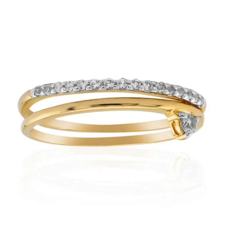 Entdecken Sie die Faszination dieses schicken Rings aus vergoldetem 925er Sterlingsilber, der 17 brasilianische weiße Topase im Rundschliff mit einem Gesamtgewicht von 0,117 Karat präsentiert. Das zarte Band mit zweifarbigem Design verleiht dem klassischen Ewigkeitsring eine moderne Note. Perfekt, um Ihrem Alltag einen Hauch von Raffinesse zu verleihen oder ein elegantes Abendensemble zu ergänzen. Machen Sie dieses vielseitige Schmuckstück zu einem festen Bestandteil Ihrer Schmucksammlung.