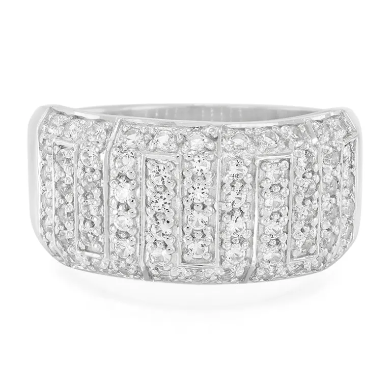 Dieser Ring aus brasilianischem Weißtopas in 925er Sterlingsilber mit einem Gesamtgewicht von 0,779 Karat ist ein exquisites Stück, das pure Eleganz ausstrahlt und eine schillernde Ergänzung für jede Schmucksammlung darstellt. Jeder der 66 makellosen weißen Topase ist brillant geschliffen, um seine Klarheit und sein Funkeln zu verstärken. Der Hochglanz des Silbers verstärkt den Glanz der Steine, während das hohe Gewicht des Silbers für Langlebigkeit sorgt. Dieser Ring ist ideal für besondere Anlässe oder als eleganter Begleiter für den Alltag und sorgt für Gesprächsstoff. Kombinieren Sie ihn mit einem einfarbigen Outfit, um seine Brillanz in den Mittelpunkt zu stellen.