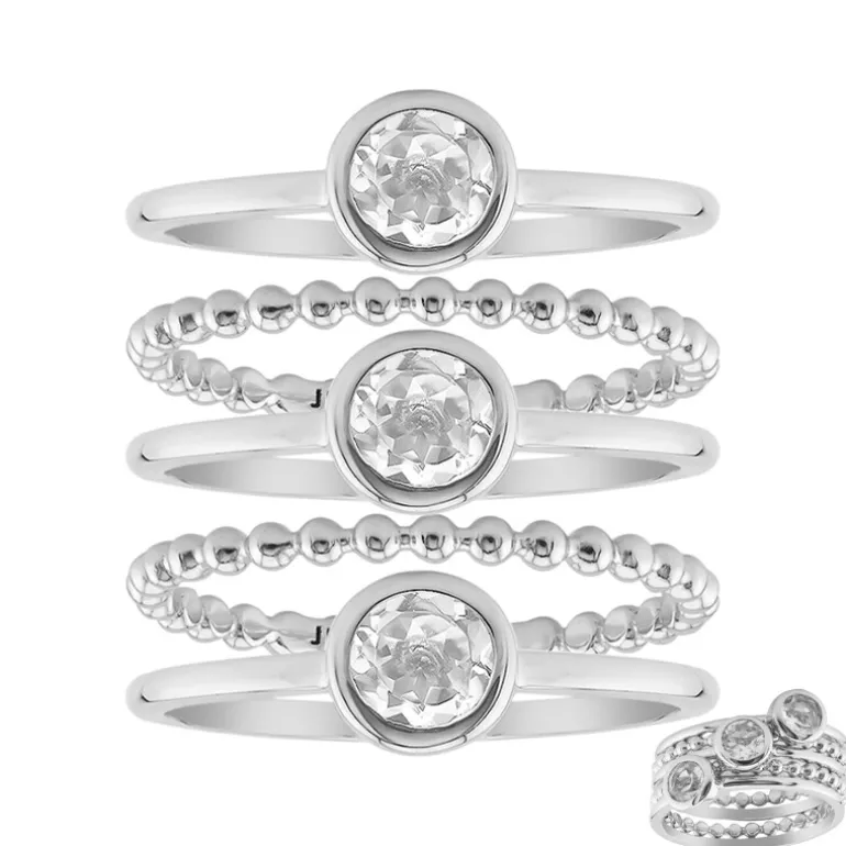 Dieses atemberaubende Set aus stapelbaren Ringen zeigt die natürliche Schönheit des nigerianischen weißen Topas. Jedes Band ist kunstvoll aus hochwertigem 925er Sterlingsilber gefertigt und zeigt einen rund geschliffenen Edelstein mit einem Gesamtgewicht von 0,792 Karat. Die Ringe können einzeln getragen werden, um einen Hauch von Eleganz zu vermitteln, oder zusammen für einen besonderen Look. Diese Ringe eignen sich perfekt, um jedem Outfit einen raffinierten Glanz zu verleihen, und sind vielseitig für den Übergang vom Tag zum Abend und für besondere Anlässe.