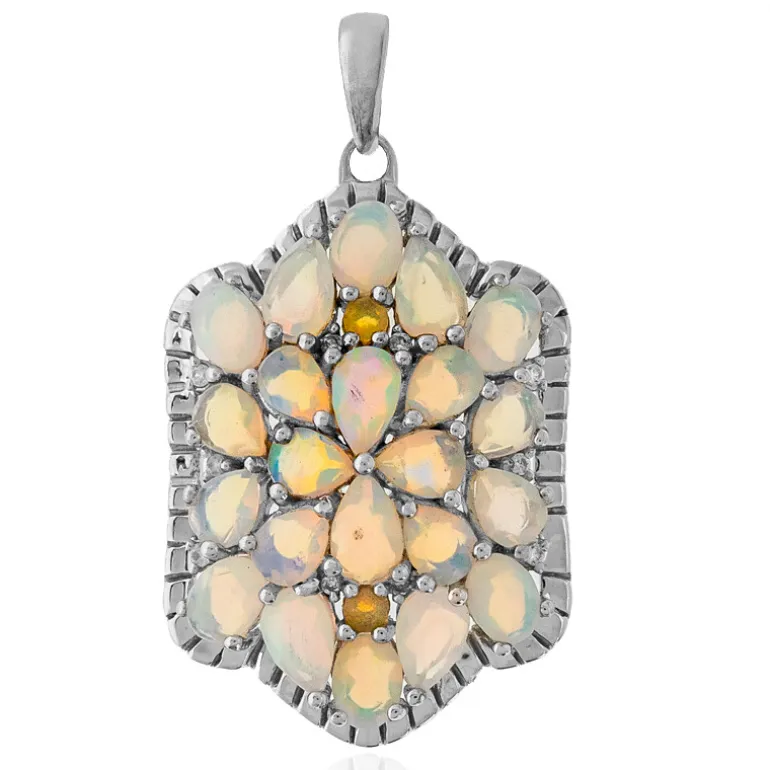 Entdecken Sie die bezaubernde Anziehungskraft dieses Welo-Opal-Anhängers aus Sterlingsilber. Das exquisite Arrangement aus äthiopischen Welo-Opalen und mexikanischen Feueropalen, ergänzt durch Zirkone aus Kambodscha, bietet ein atemberaubendes Farbenspiel. Ideal für elegante Abende oder tagsüber, passt er sowohl zu formellen Kleidern als auch zu legeren Outfits und verleiht jedem Anlass einen Hauch von Magie.