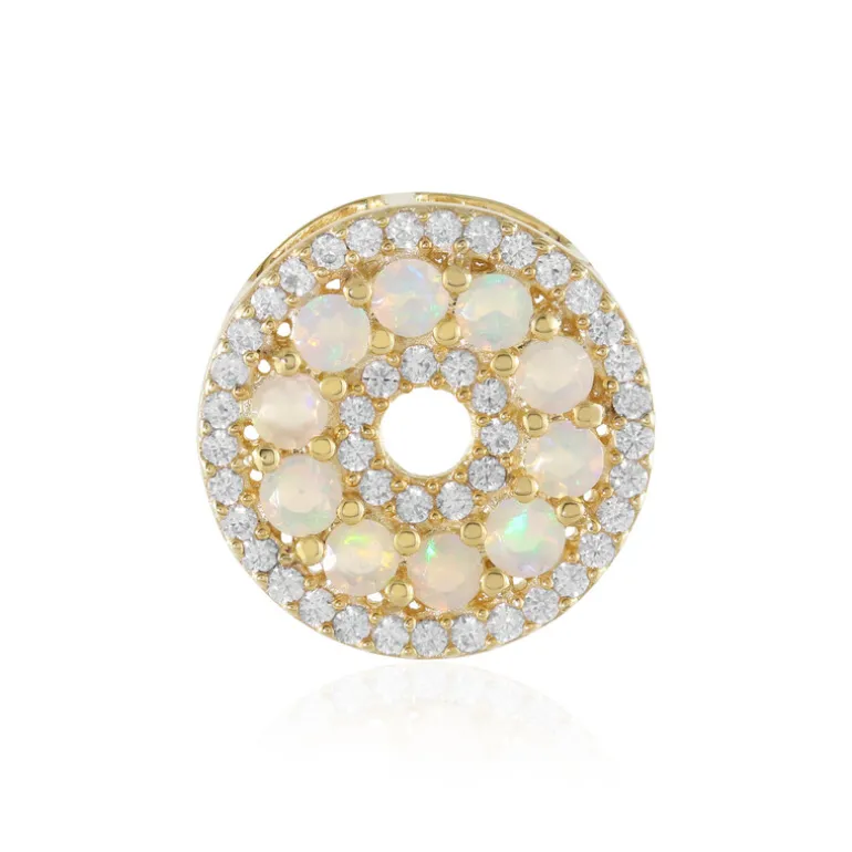 Dieser exquisite Anhänger besteht aus 10 leuchtenden Welo-Opalen aus Äthiopien, die durch 44 funkelnde Zirkone aus Kambodscha wunderbar ergänzt werden. Der Anhänger aus vergoldetem 925er Sterlingsilber strahlt Eleganz und Raffinesse aus. Perfekt für abendliche Soireen oder einen eleganten Tageslook. Kombinieren Sie es mit einer schlichten Kette, um seinen Glanz zur Geltung zu bringen, oder ergänzen Sie es mit passenden goldenen Ohrringen für ein komplettes Ensemble.