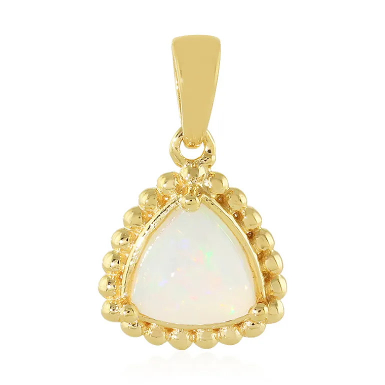 Entdecken Sie die bezaubernde Anziehungskraft dieses fesselnden Anhängers aus vergoldetem Sterlingsilber, der mit einem 1,16ct Trilliant-Cabochon Welo-Opal aus Äthiopien besetzt ist. Der strahlende Opal und die Silhouette aus 925er Sterling Silber machen diesen 21×12 mm großen Anhänger zu einem wahren Schatz. Ein perfektes Accessoire, um sowohl der Tages- als auch der Abendgarderobe einen Hauch von Eleganz zu verleihen. Lassen Sie sich von seinem schillernden Charme verzaubern und machen Sie ihn zum Herzstück Ihrer Schmucksammlung.