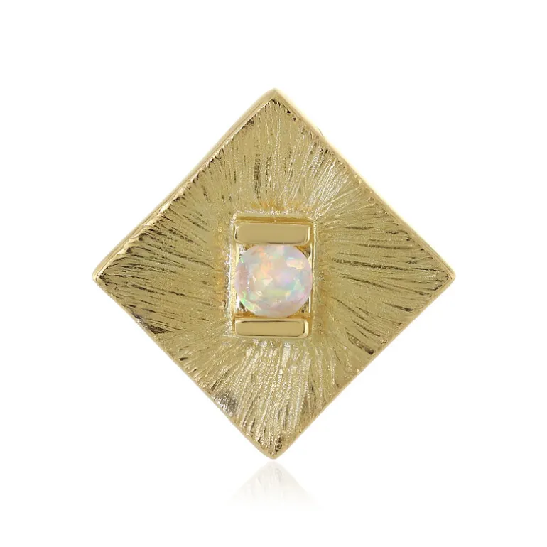 Entdecken Sie den fesselnden Charme unseres vergoldeten Silberanhängers, der einen faszinierenden äthiopischen Welo-Opal mit einem runden Schliff von 0,109 Karat in glänzendem 925er Sterling Silber präsentiert. Das strukturierte Sunburst-Design umrahmt den schillernden Tanz der Farben des Opals und macht ihn zu einem herausragenden Accessoire für jede Gelegenheit. Kombinieren Sie dieses elegante Stück mit einer klassischen Bluse oder einem schicken Abendkleid für einen subtilen Hauch von Raffinesse.