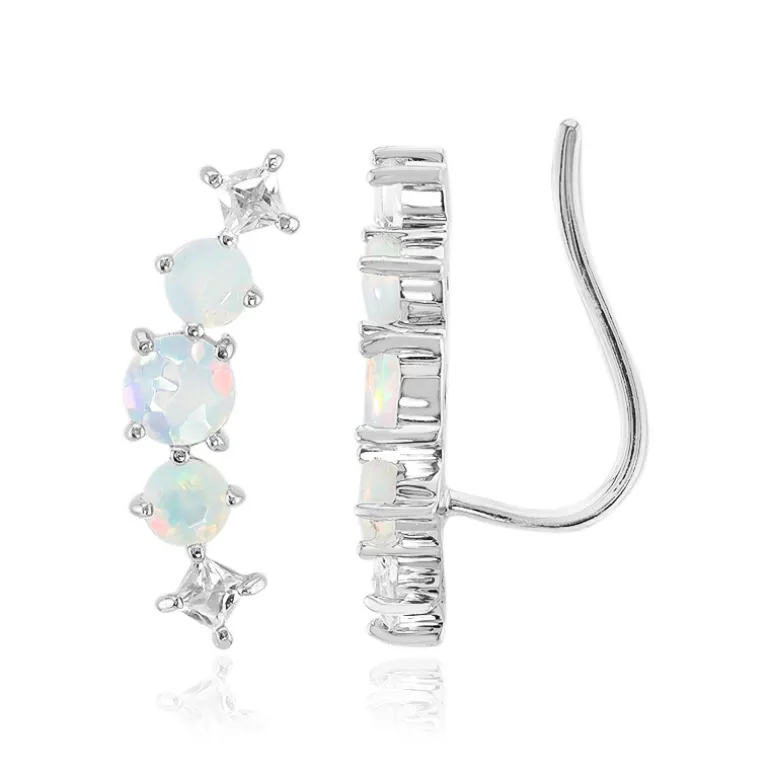 Diese eleganten Ohrringe bestehen aus leuchtenden Welo-Opalen aus Äthiopien, gepaart mit schillernden weißen Topasen aus Brasilien. Die Ohrringe sind aus 925er Sterlingsilber mit Platin-Finish gefertigt und zeigen eine reizvolle Mischung aus runden und prinzessinnenförmigen Steinen. Mit einem Gesamtgewicht von 0,838 ct sind sie perfekt geeignet, um sowohl lässigen als auch formellen Outfits einen Hauch von Luxus zu verleihen. Ideal für besondere Anlässe oder als durchdachtes Geschenk.