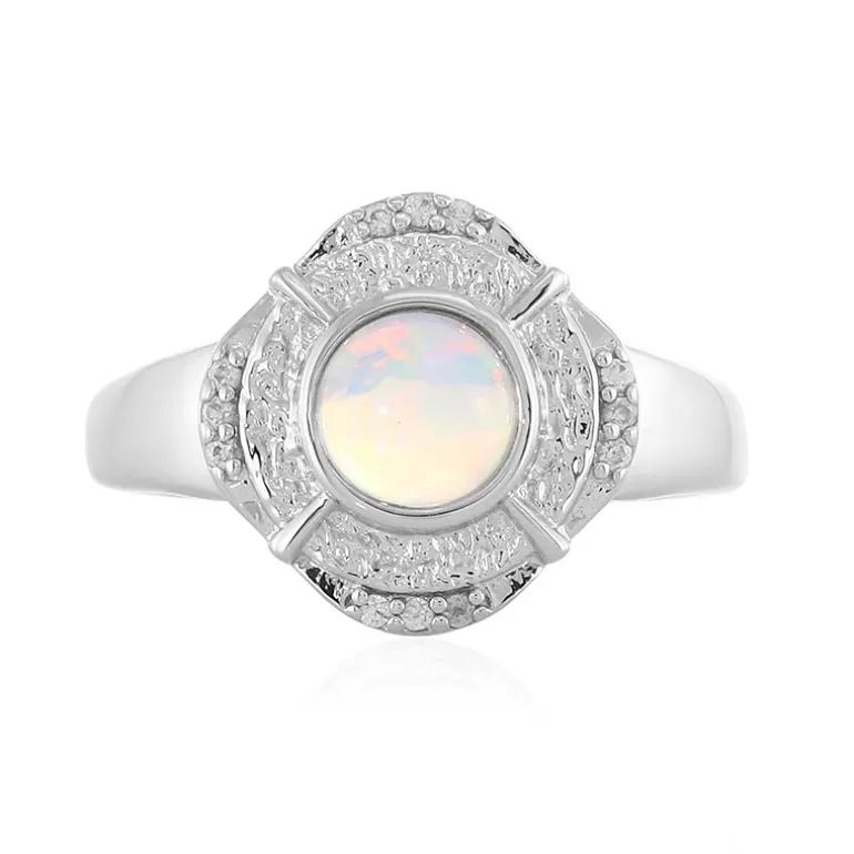 Äthiopischer Welo Opal & Zirkon Platin Silber Ring, 0,584ct