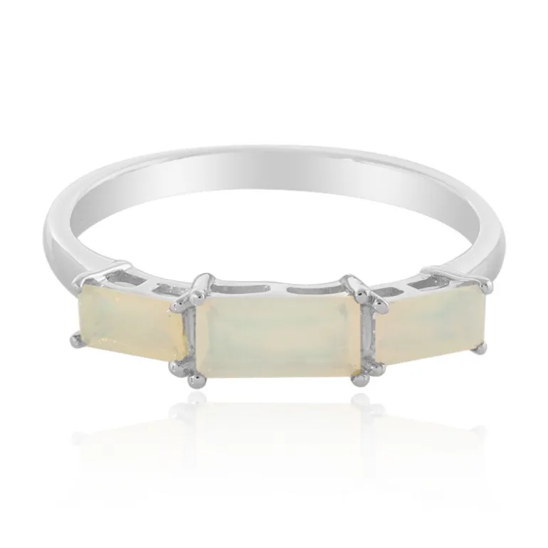 Dieser atemberaubende Ring enthält echte äthiopische Welo-Opale mit einem Gesamtgewicht von 0,756 Karat, die elegant in Baguetteform geschliffen sind. Montiert auf hochwertigem 925er Sterlingsilber kommt das schillernde Farbspiel der Opale in diesem Design wunderbar zur Geltung. Mit einem Gewicht von ca. 2,03 Gramm ist der Ring ein komfortabler und luxuriöser Begleiter für das tägliche Tragen oder besondere Anlässe. Er ist ideal für alle, die die Faszination der Opale zu schätzen wissen, und kann eine bezaubernde Ergänzung für jede Schmucksammlung sein.