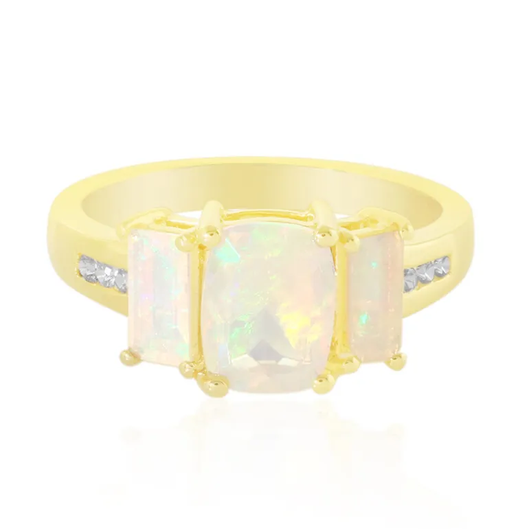 Entdecken Sie den Tanz der Farben mit diesem exquisiten Ring aus vergoldetem 925er Sterlingsilber, in dessen Mittelpunkt der faszinierende äthiopische Welo-Opal steht. Mit insgesamt 1,357 Karat wird das einzigartige Farbenspiel des Opals durch funkelnde Zirkone aus Kambodscha ergänzt. Mit seinem Antik- und Baguetteschliff verbindet dieser Ring Vintage-Charme mit modernem Luxus. Er ist perfekt für besondere Anlässe und verleiht sowohl der Tages- als auch der Abendgarderobe einen raffinierten Touch.