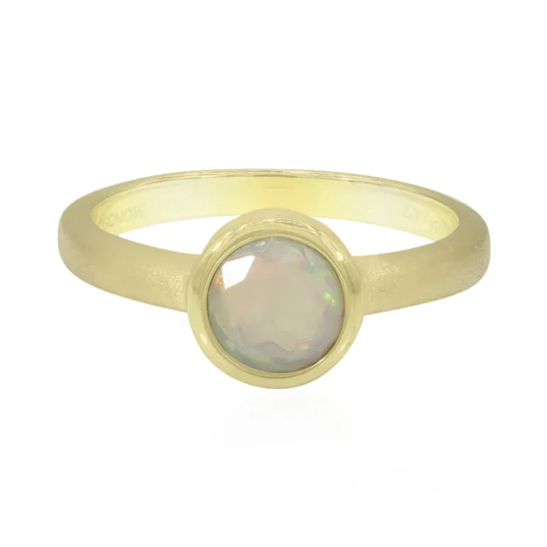Entdecken Sie das bezaubernde Farbenspiel unseres äthiopischen Welo-Opal-Rings. Eingefasst in glänzendes 925er Sterlingsilber und umhüllt von einer warmen Vergoldung, besticht dieser 0,48 Karat schwere Edelstein durch seinen schillernden Charme. Mit seinem raffinierten Rundschliff von ca. 6 mm Länge zelebriert er Raffinesse. Er ist ideal, um Ihrer Alltagskleidung einen Hauch von Eleganz zu verleihen oder für besondere Anlässe, die ein subtiles Funkeln erfordern.