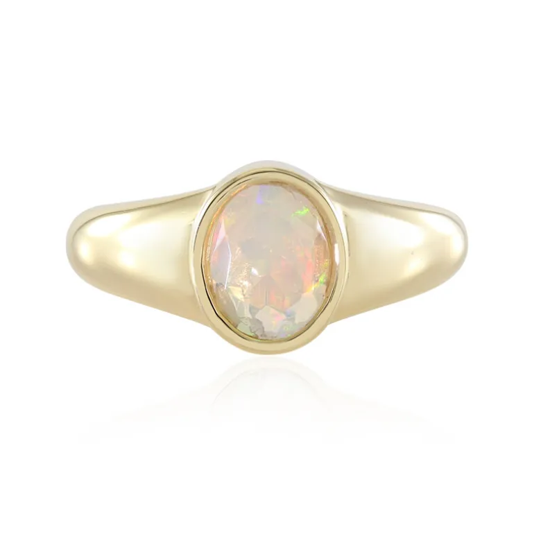 Entdecken Sie die bezaubernde Schönheit des äthiopischen Welo-Opals, gefasst in diesem verführerischen Ring aus vergoldetem Sterlingsilber. Der 0,634-karätige Opal mit seinem faszinierenden Farbenspiel ist elegant in einer ovalen Form geschliffen. Dieser Ring eignet sich sowohl für den Alltag als auch für besondere Anlässe. Er passt perfekt zu Abendgarderobe oder einem schicken Tagesoutfit und verleiht einen Hauch von raffiniertem Charme.