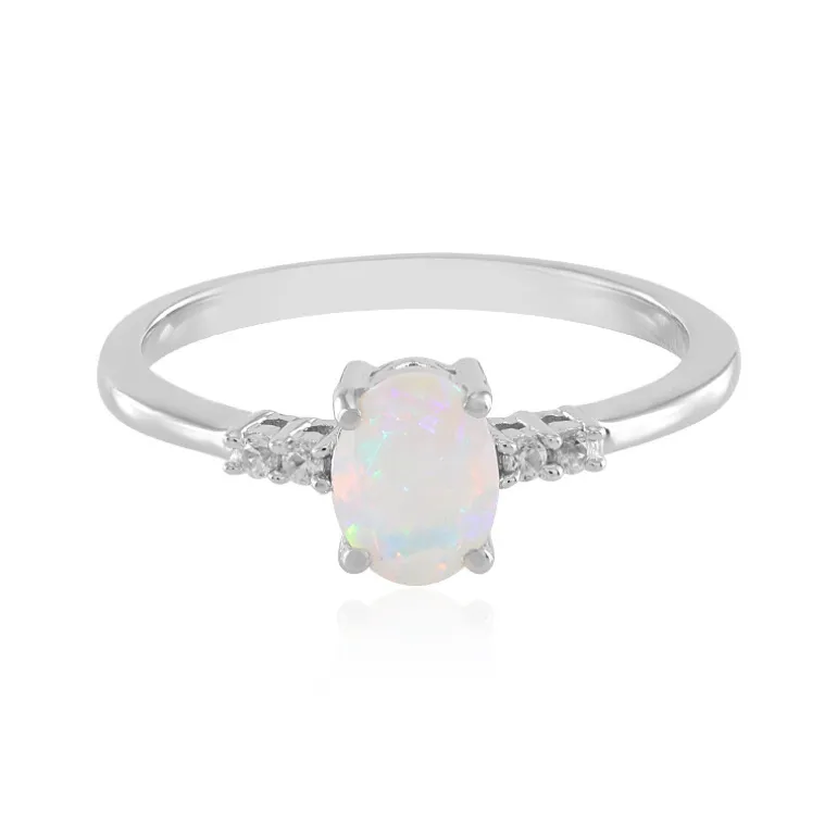 Äthiopischer Welo Opal & Zirkon Platinplattierter Silberring
