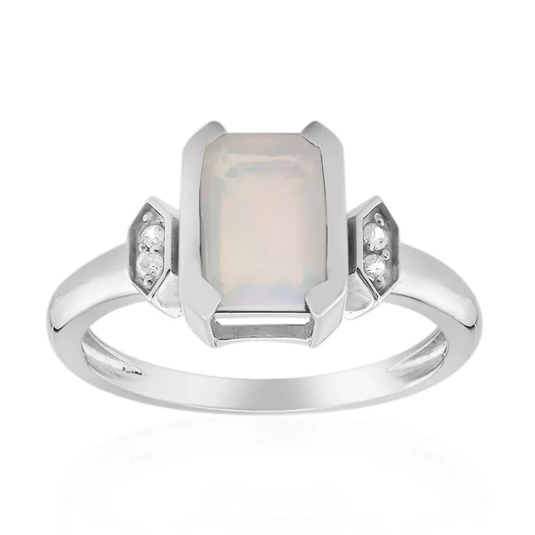 Präsentieren Sie ein Stück der Sterne mit diesem ätherischen äthiopischen Welo-Opal-Ring. Der bezaubernde Opal mit einem Gewicht von 0,827 Karat wird von funkelnden Zirkon-Seitensteinen mit einem Gesamtgewicht von 0,049 Karat akzentuiert, die alle wunderschön in einem eleganten und modernen Band aus platiniertem 925er Sterlingsilber gefasst sind. Sein einzigartiges Farbenspiel macht ihn zu einer vielseitigen Ergänzung jeder Schmucksammlung. Er passt sowohl zu formeller als auch zu legerer Kleidung und ist ideal für Momente, die nach einem subtilen, aber bezaubernden Statement verlangen.