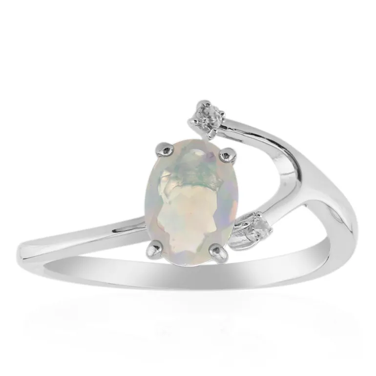Dieser atemberaubende Ring besteht aus einem äthiopischen Welo-Opal mit einem Gewicht von 0,437 Karat und einem bezaubernden Farbenspiel, das das Auge fesselt. Ergänzt durch zwei funkelnde Zirkone mit einem Gesamtgewicht von 0,048 ct ist dieses Schmuckstück in platiniertem 925er Sterling Silber gefasst und bietet zusätzlichen Luxus. Der ovale Schliff des Opals und die dynamische Silhouette des Rings machen ihn zu einer unverwechselbaren Wahl für das tägliche Tragen oder besondere Anlässe. Kombinieren Sie ihn mit einer klassischen weißen Bluse für einen eleganten Tag oder mit einem schwarzen Abendkleid für einen eleganten Abend.
