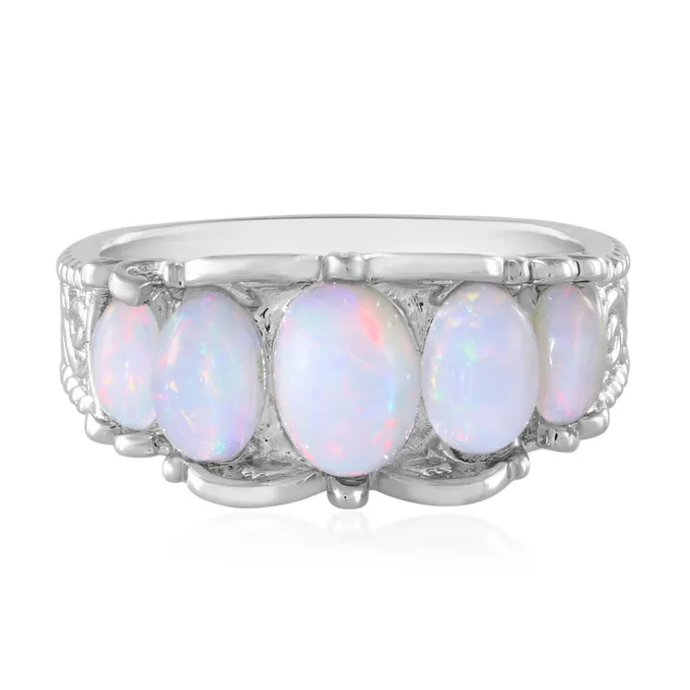 Entdecken Sie die bezaubernde Anziehungskraft des äthiopischen Welo-Opals in diesem exquisiten Ring aus Sterlingsilber. Mit seinen fesselnden Opal-Cabochons schimmert dieses Schmuckstück in einem Farbenspiel, das sich für jeden Anlass eignet. Die Platinplattierung unterstreicht seine moderne Eleganz und macht ihn zu einem vielseitigen Accessoire. Kombinieren Sie ihn mit einem schicken Abendkleid oder einem legeren Outfit für einen Hauch von Raffinesse.