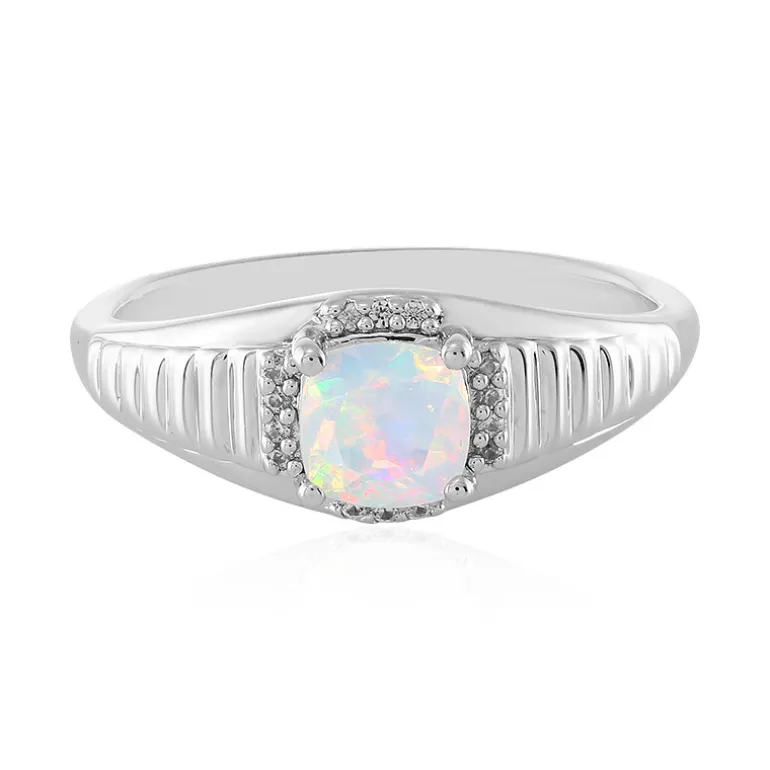 Dieser atemberaubende Ring präsentiert einen bezaubernden Welo-Opal aus Äthiopien mit 0,605 Karat und einem antiken Kissenschliff, der das Licht aus jedem Winkel einfängt. Umgeben von strahlenden kambodschanischen Zirkon-Akzenten von insgesamt 0,116 Karat, wird das Design durch ein poliertes 925er Sterlingsilberband vervollständigt, das sowohl Haltbarkeit als auch Glanz bietet. Seine zeitlose Silhouette macht ihn zu einem vielseitigen Schmuckstück für den Alltag oder besondere Anlässe. Kombinieren Sie ihn mit einem zarten Silberarmband, um seinen jenseitigen Glanz zu betonen, und verleihen Sie jedem Ensemble einen Hauch von Raffinesse.